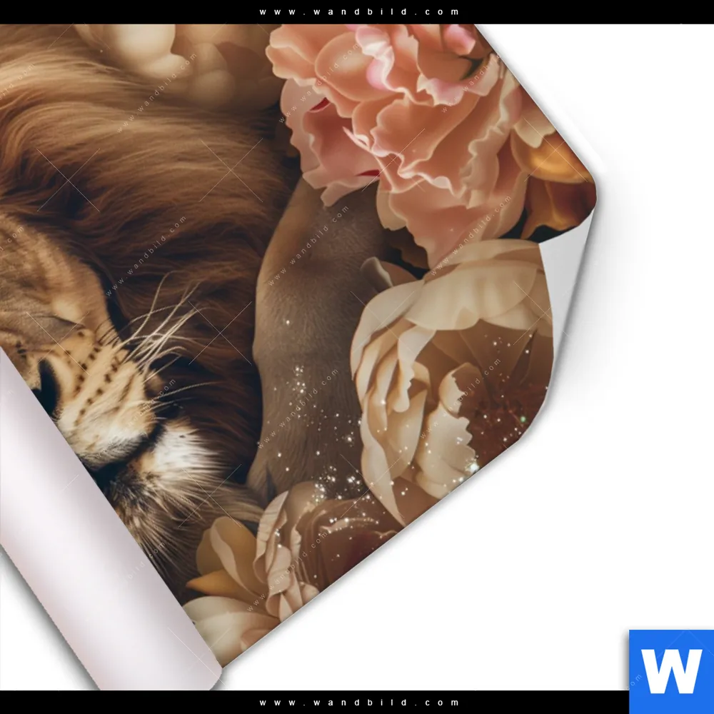 Poster | Löwe schläft in Blüten | Querformat
