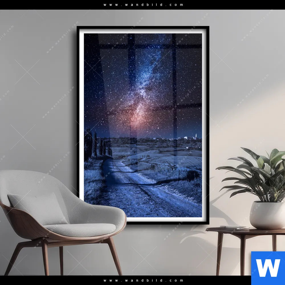 Poster | Milchstraße über einem Feldweg | Hochformat