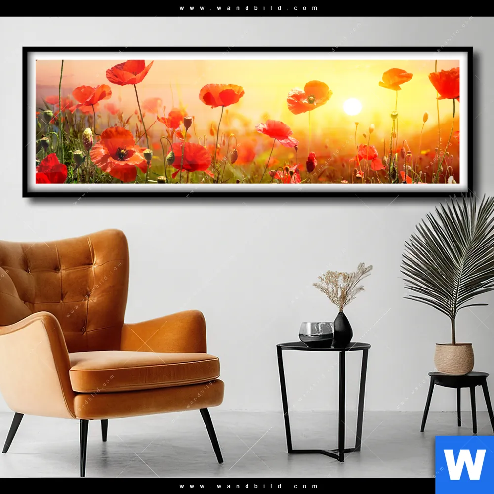 Poster | Mohnblumenfeld bei Sonnenuntergang | Panorama