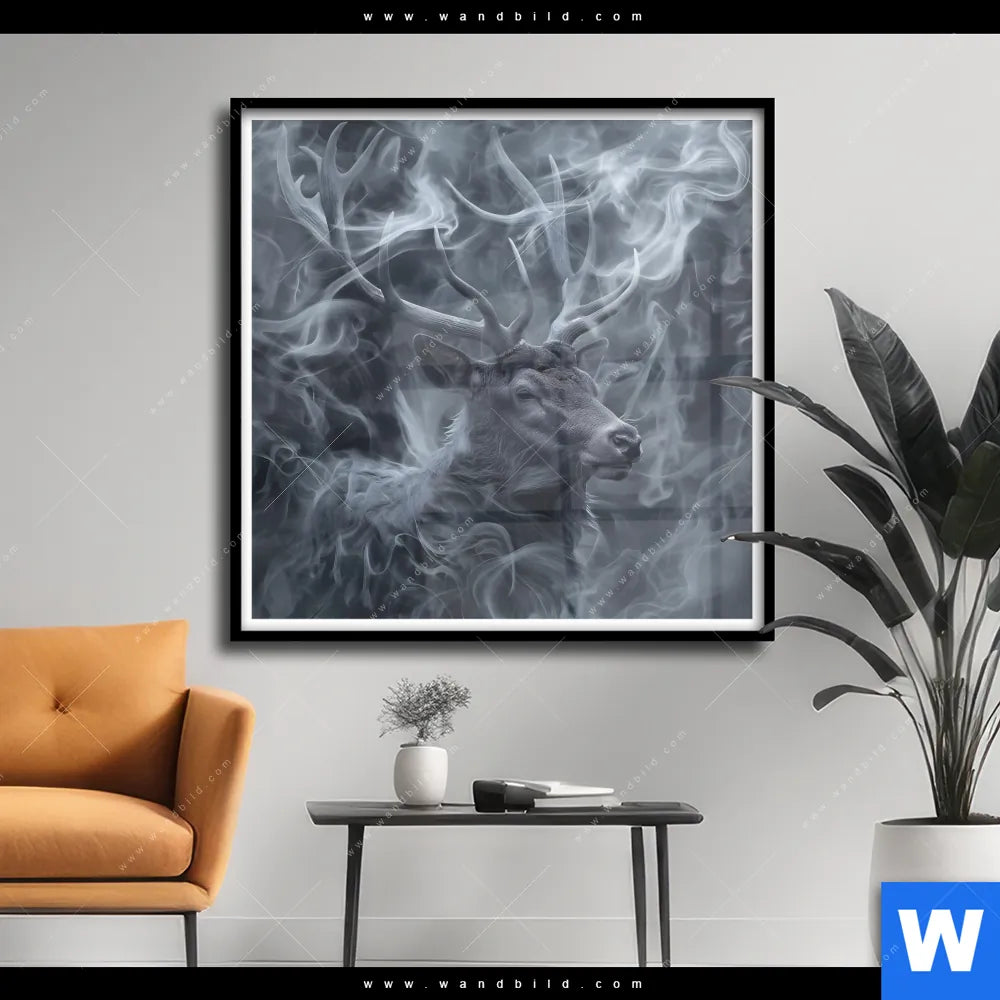Poster | Mystischer Hirsch im Nebel | Quadrat