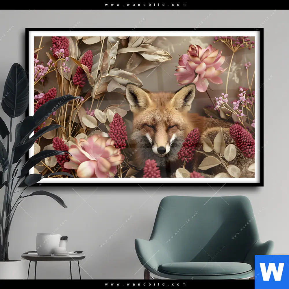 Poster | Naturbild Fuchs und Blumen | Querformat