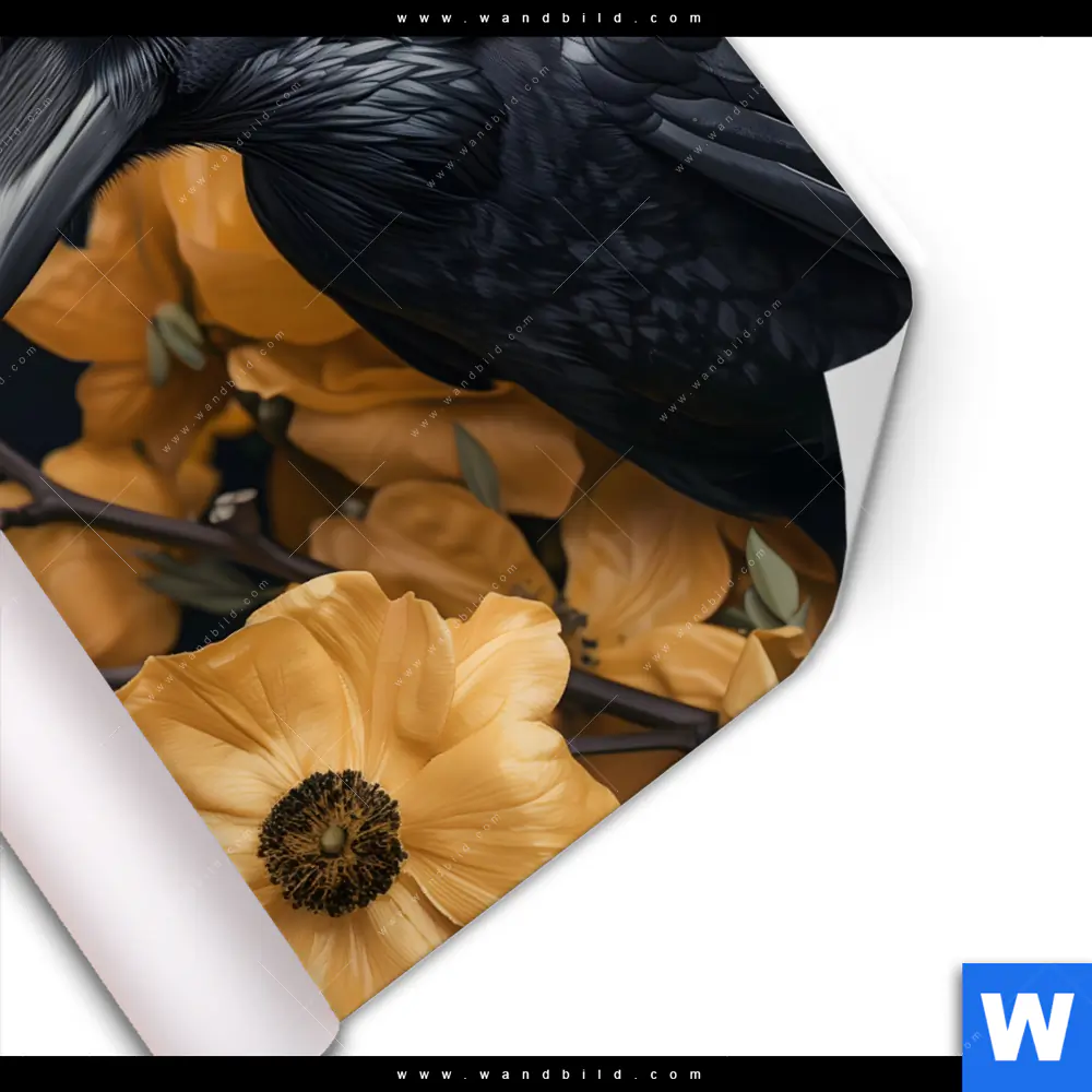 Poster | Naturbild - Rabe & Blüten | Quadrat