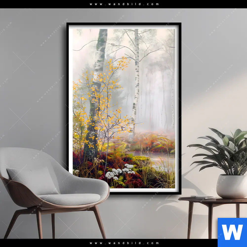 Poster | Naturidylle - Birken im Nebel | Hochformat