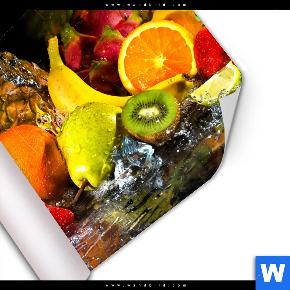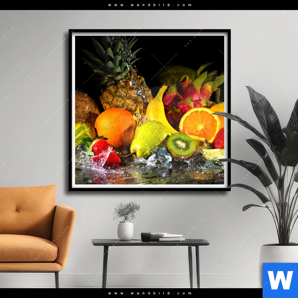 Poster | Obst-in spritzendem Wasser | Quadrat