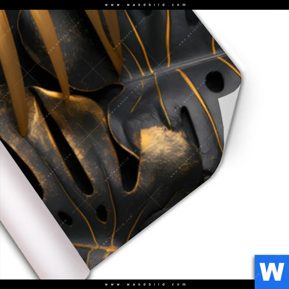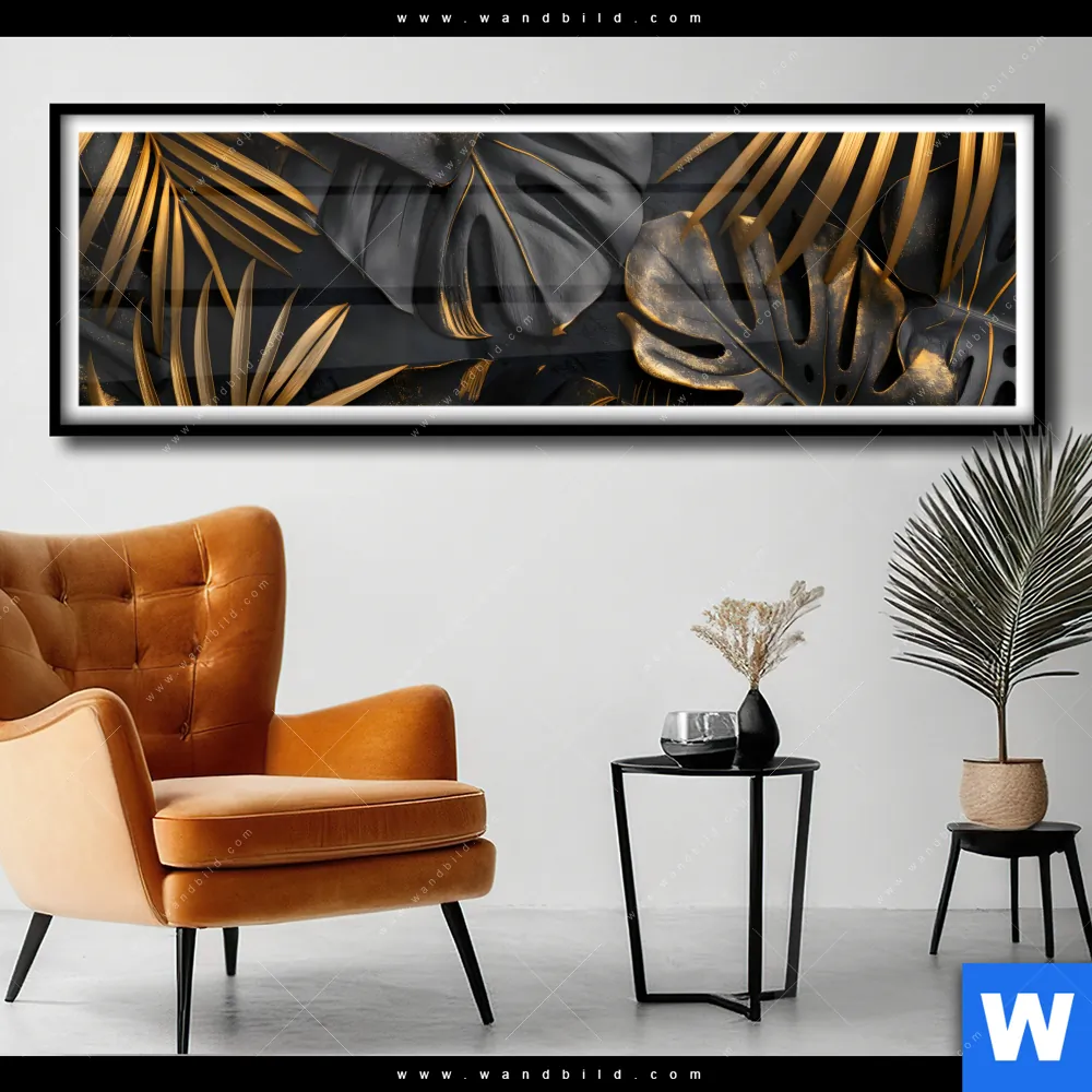 Poster | Palmenblätter Schwarz Gold | Panorama