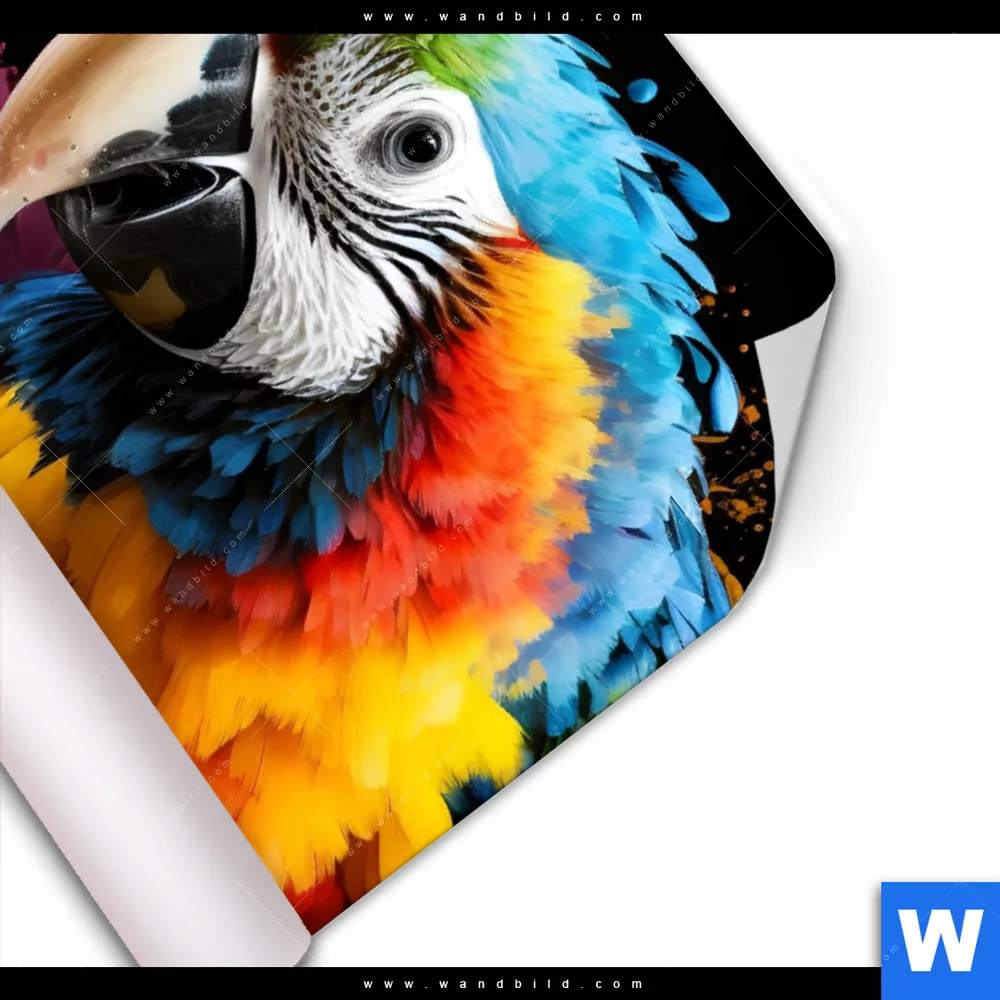 Poster | Papagei mit bunten Farbspritzern | Hochformat