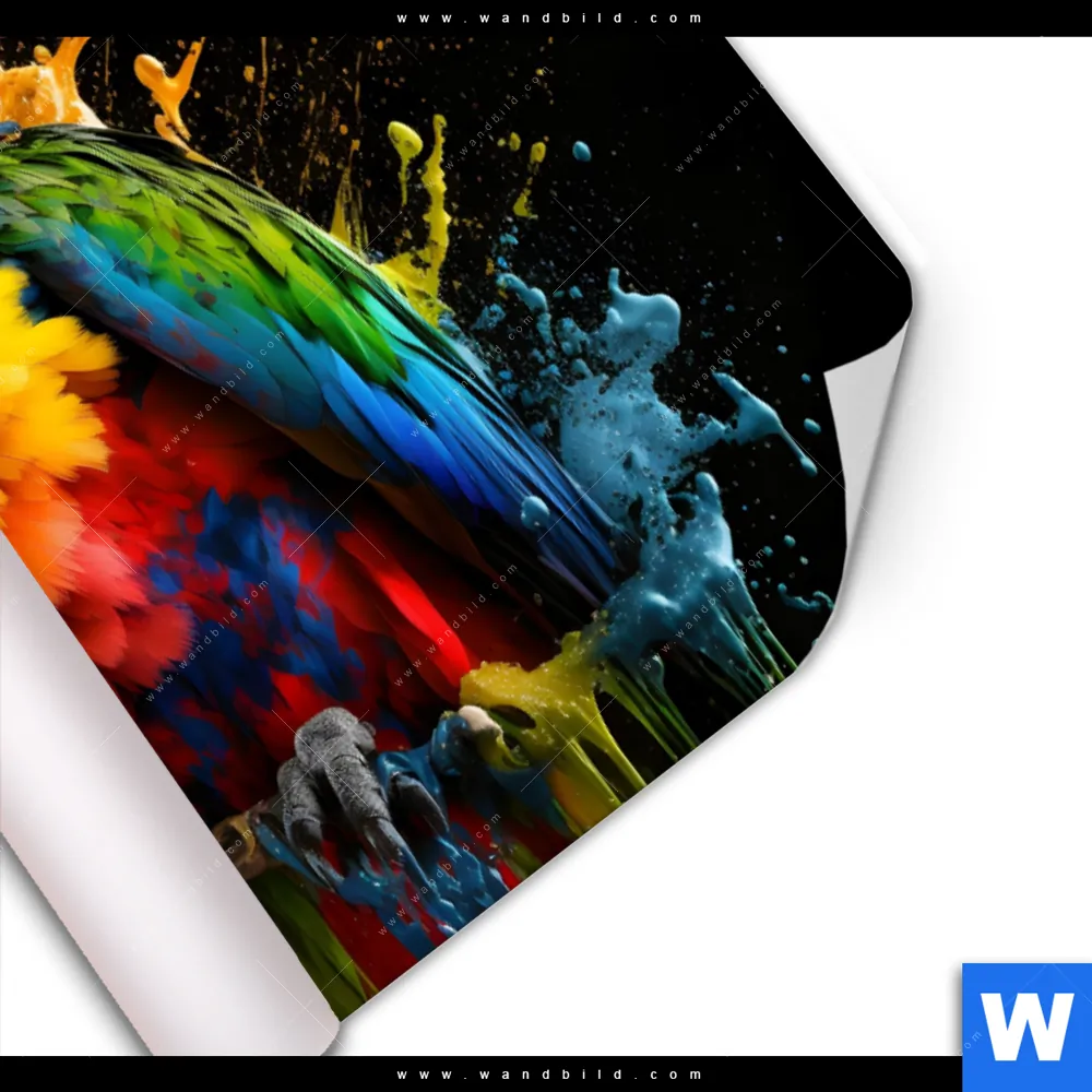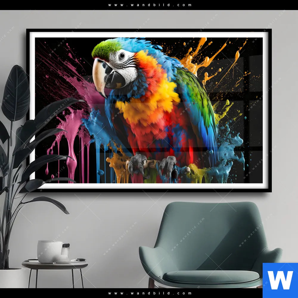 Poster | Papagei mit bunten Farbspritzern | Querformat
