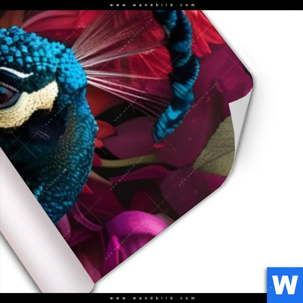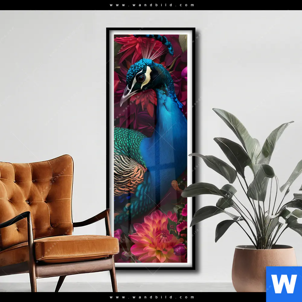 Poster | Prachtvoller Pfau und Blüten | Schmal