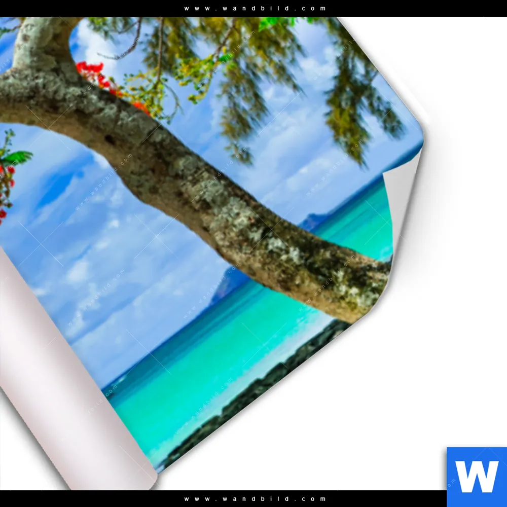 Poster | Rote Blüten und Türkisfarbenes Meer | Panorama