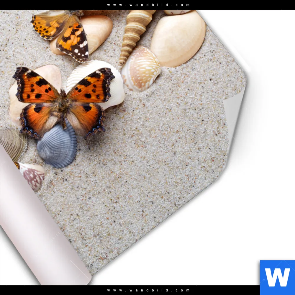 Poster | Schmetterlinge & Muscheln im Sand | Quadrat