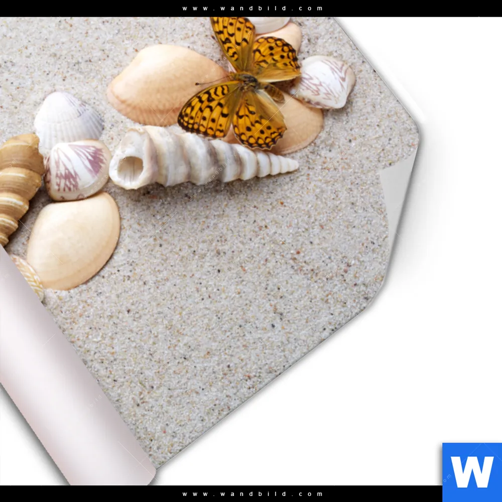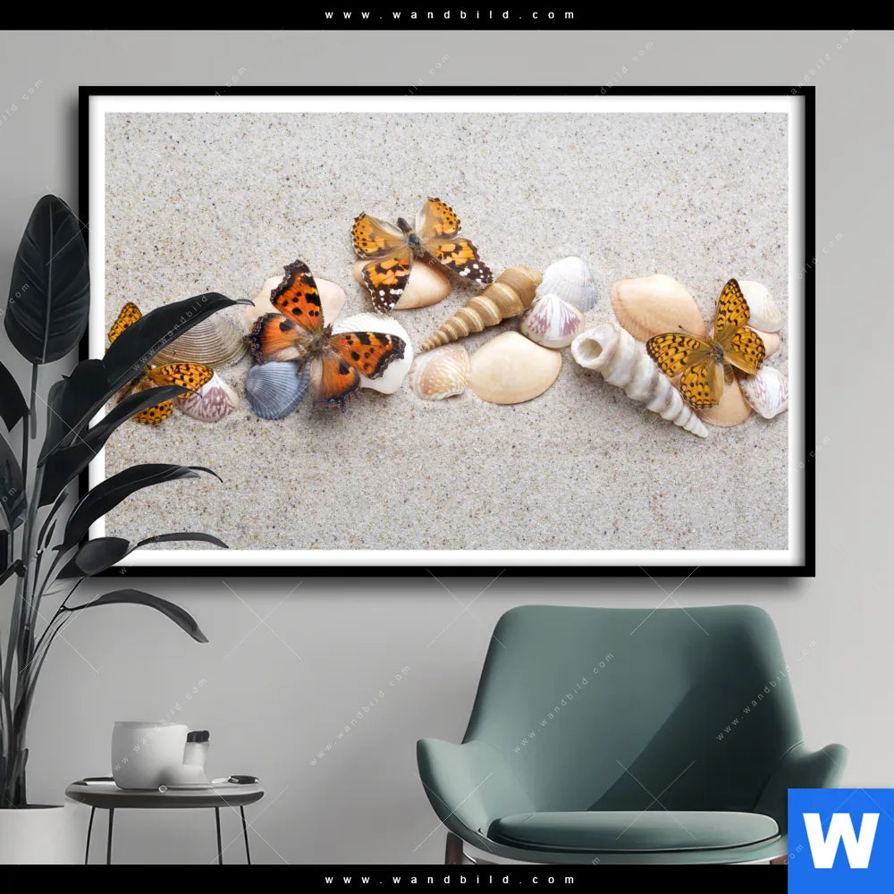 Poster | Schmetterlinge & Muscheln im Sand | Querformat