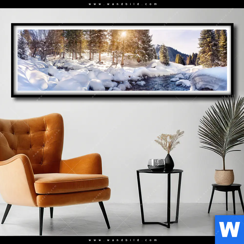 Poster | Schneebedeckte Landschaft am Fluss | Panorama