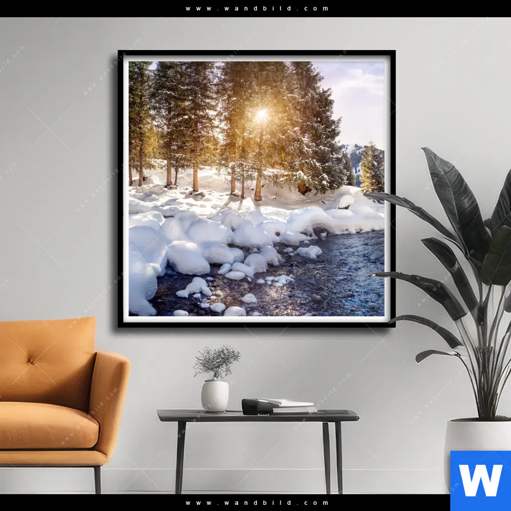 Poster | Schneebedeckte Landschaft am Fluss | Quadrat