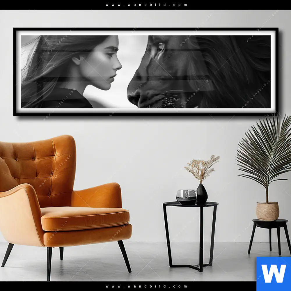 Poster | Seelenblick - Löwe & Frau | Panorama