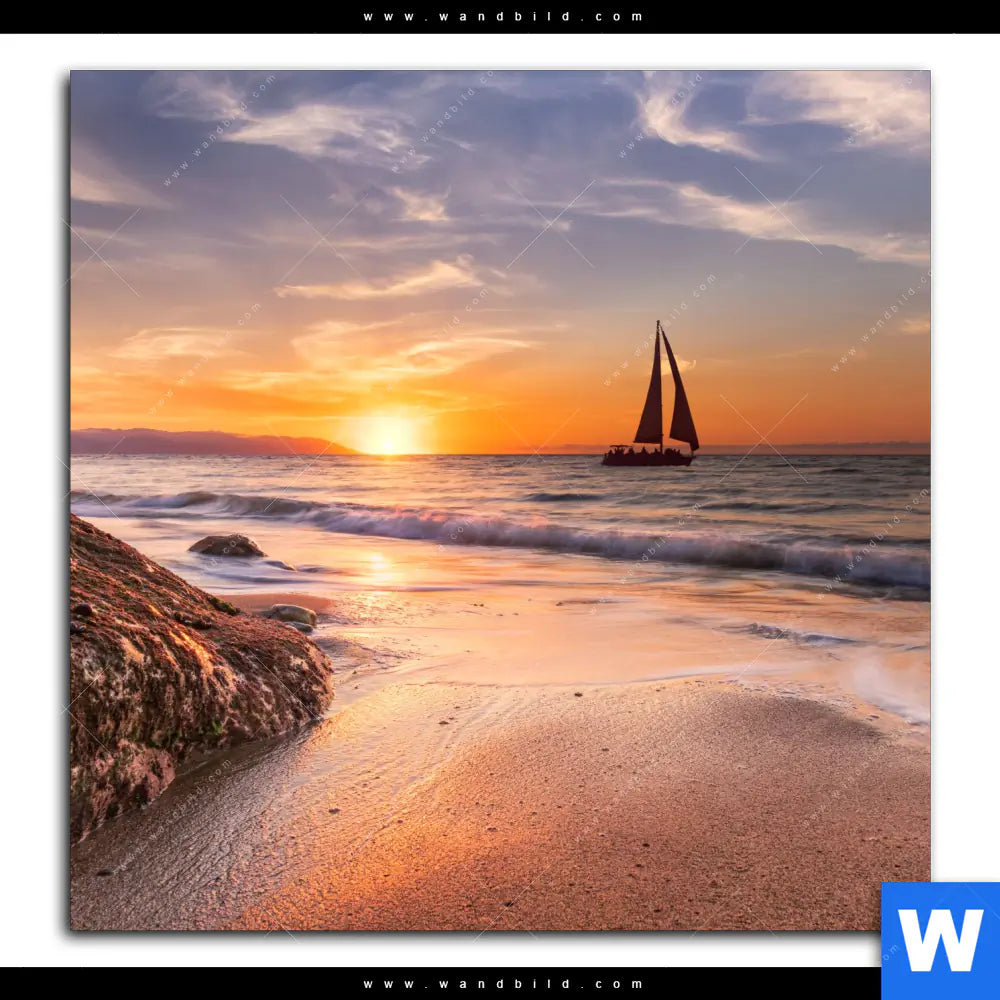 Poster | Segelboot im Sonnenuntergang | Quadrat