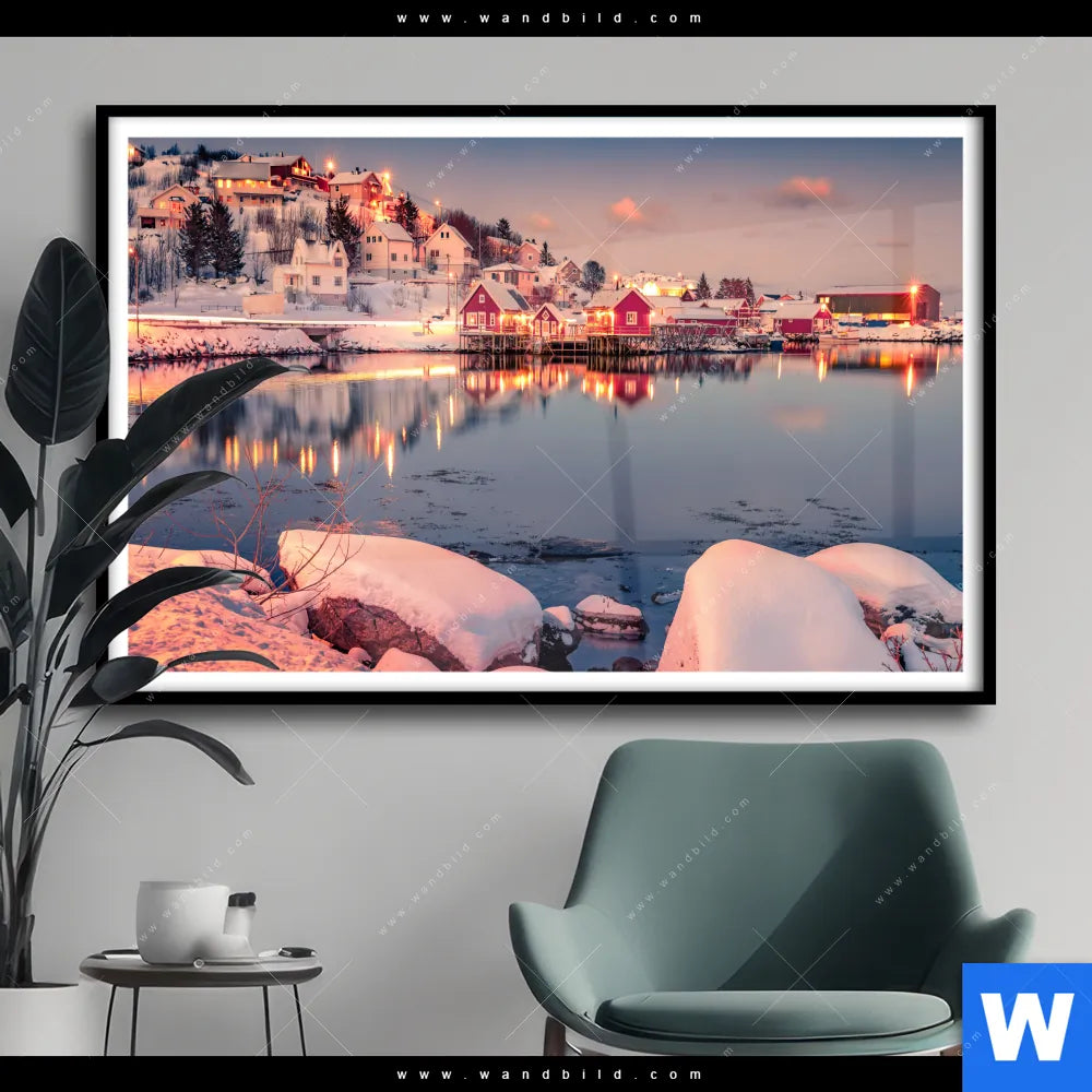 Poster | Skandinavische Stadt bei Nacht | Querformat