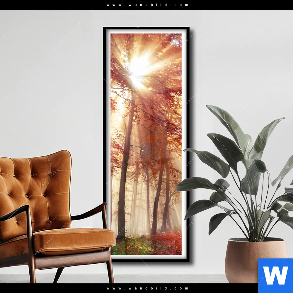 Poster | Sonnenlicht im nebligen Wald | Schmal