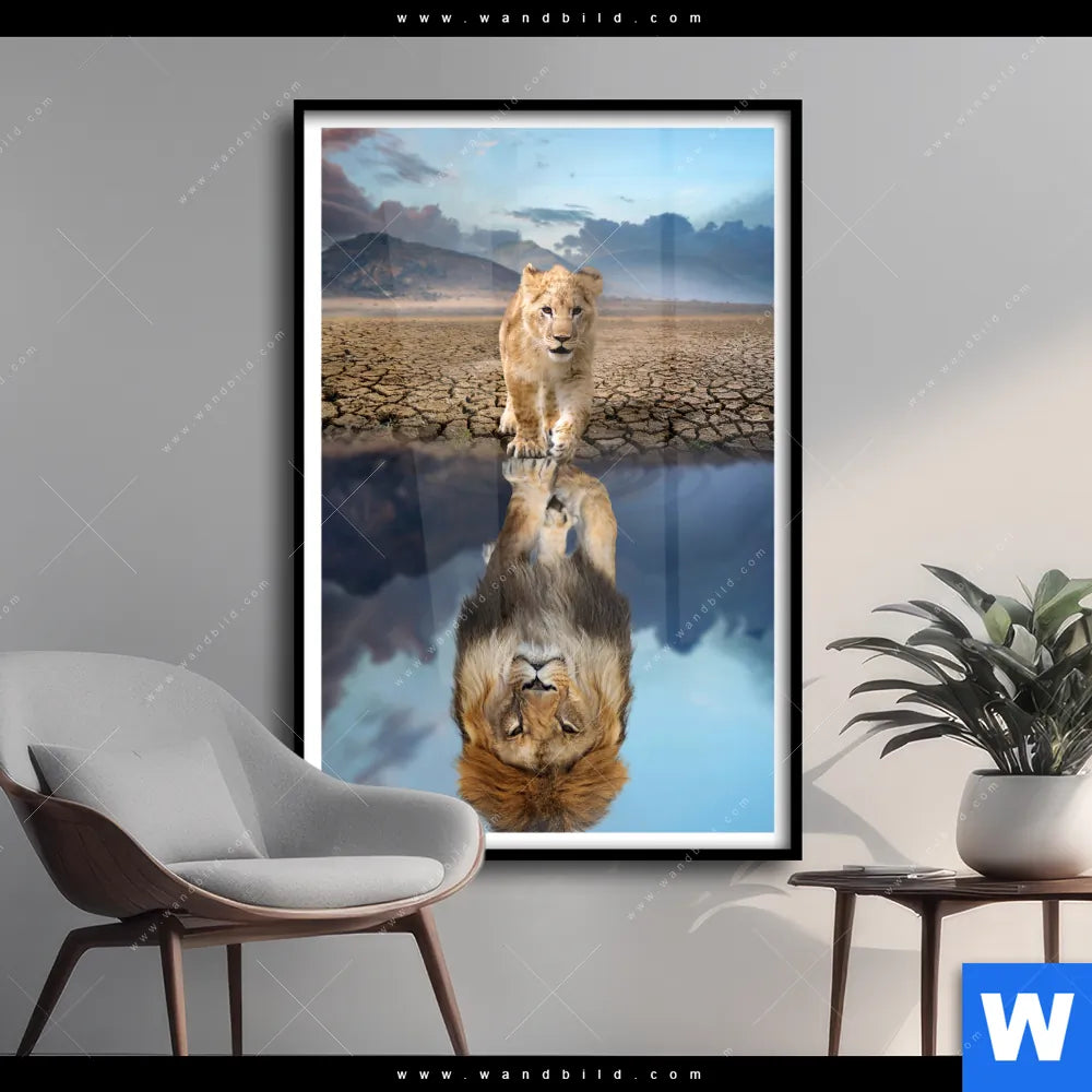 Poster | Spiegelbild Löwe & Löwenjunges | Hochformat