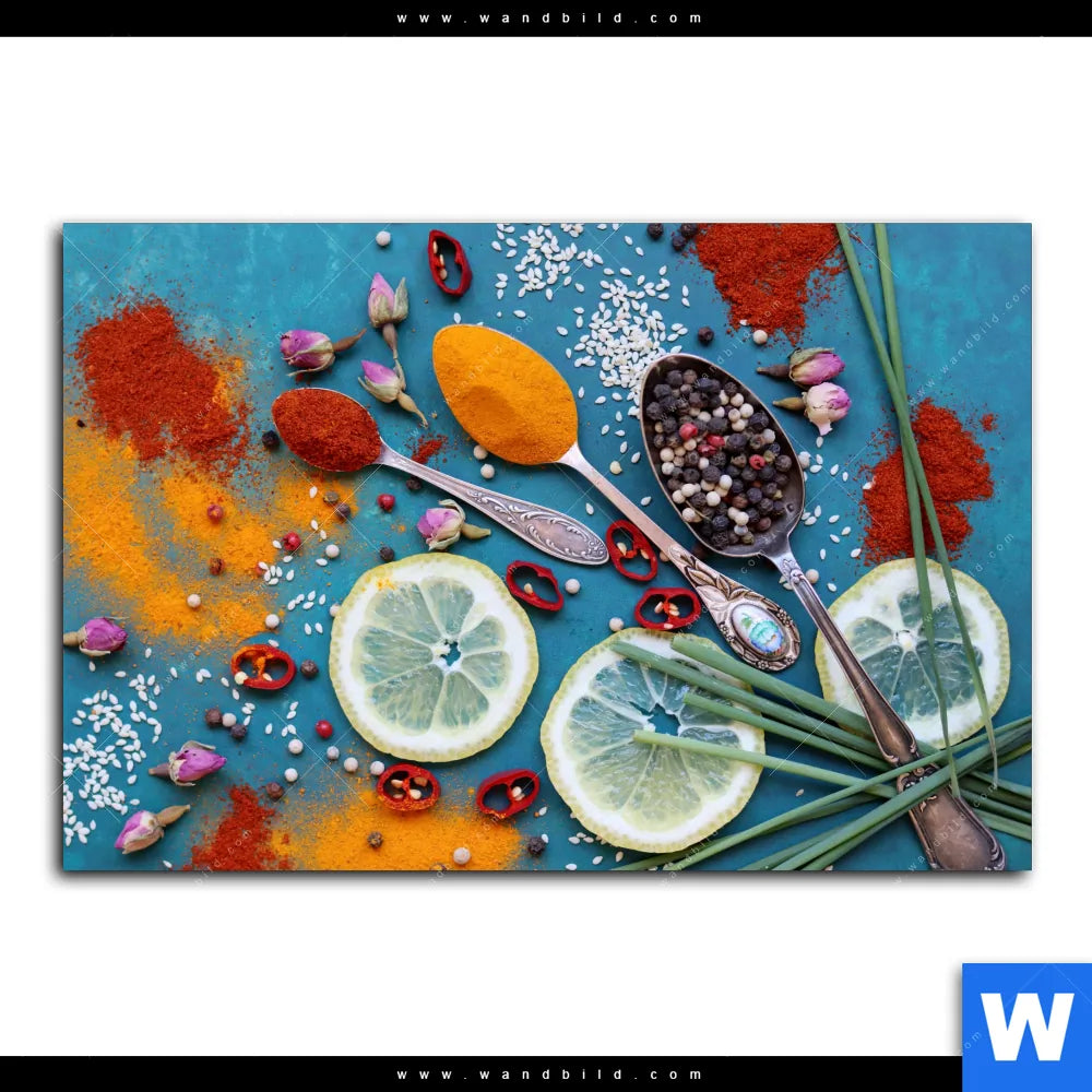 Poster | Vintage Silberlöffel mit Gewürzen | Querformat