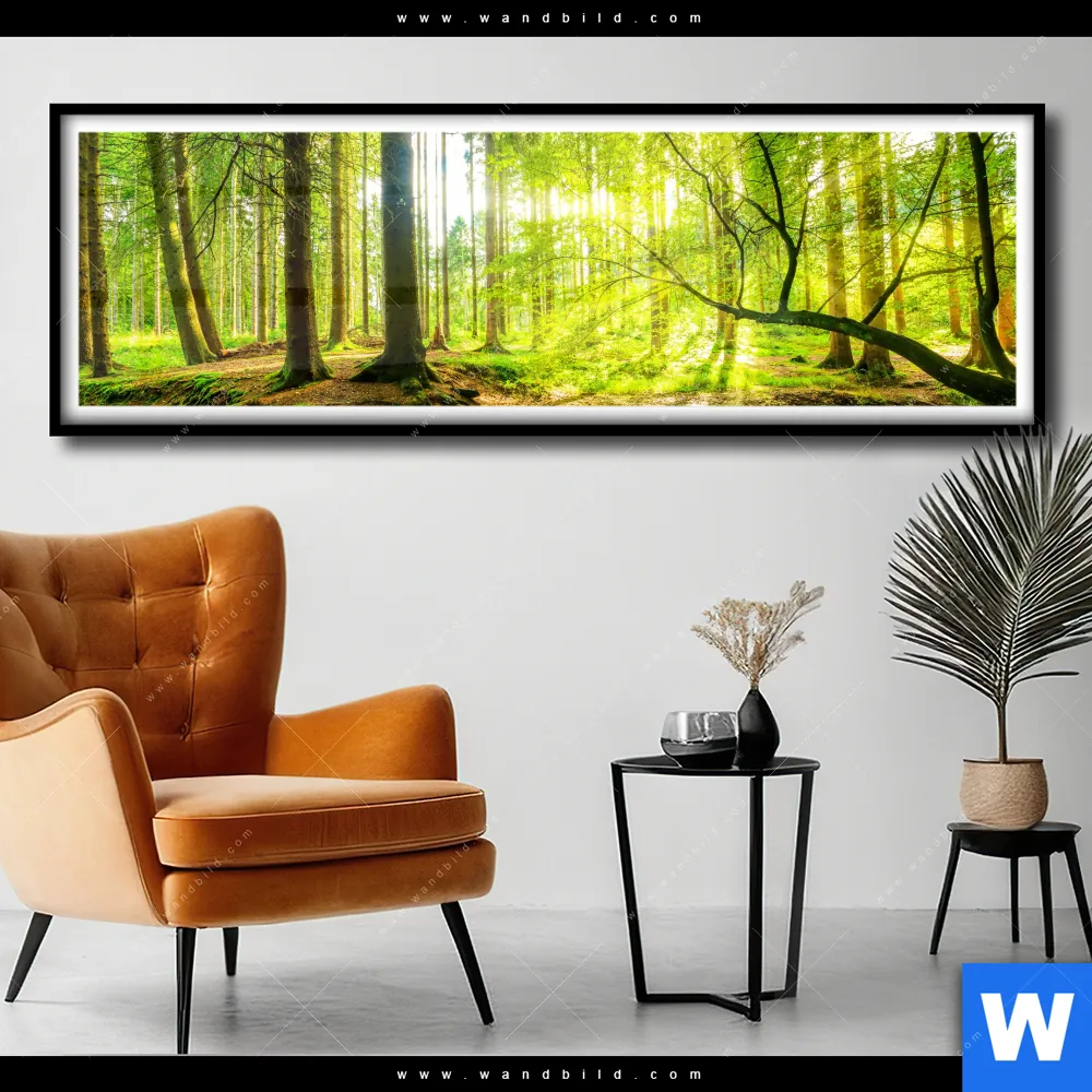 Poster | Wald mit Sonnenstrahlen | Panorama