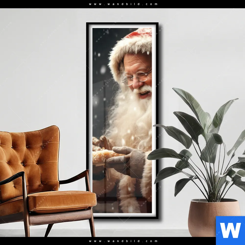Poster | Weihnachtsmann füttert Rentier | Schmal