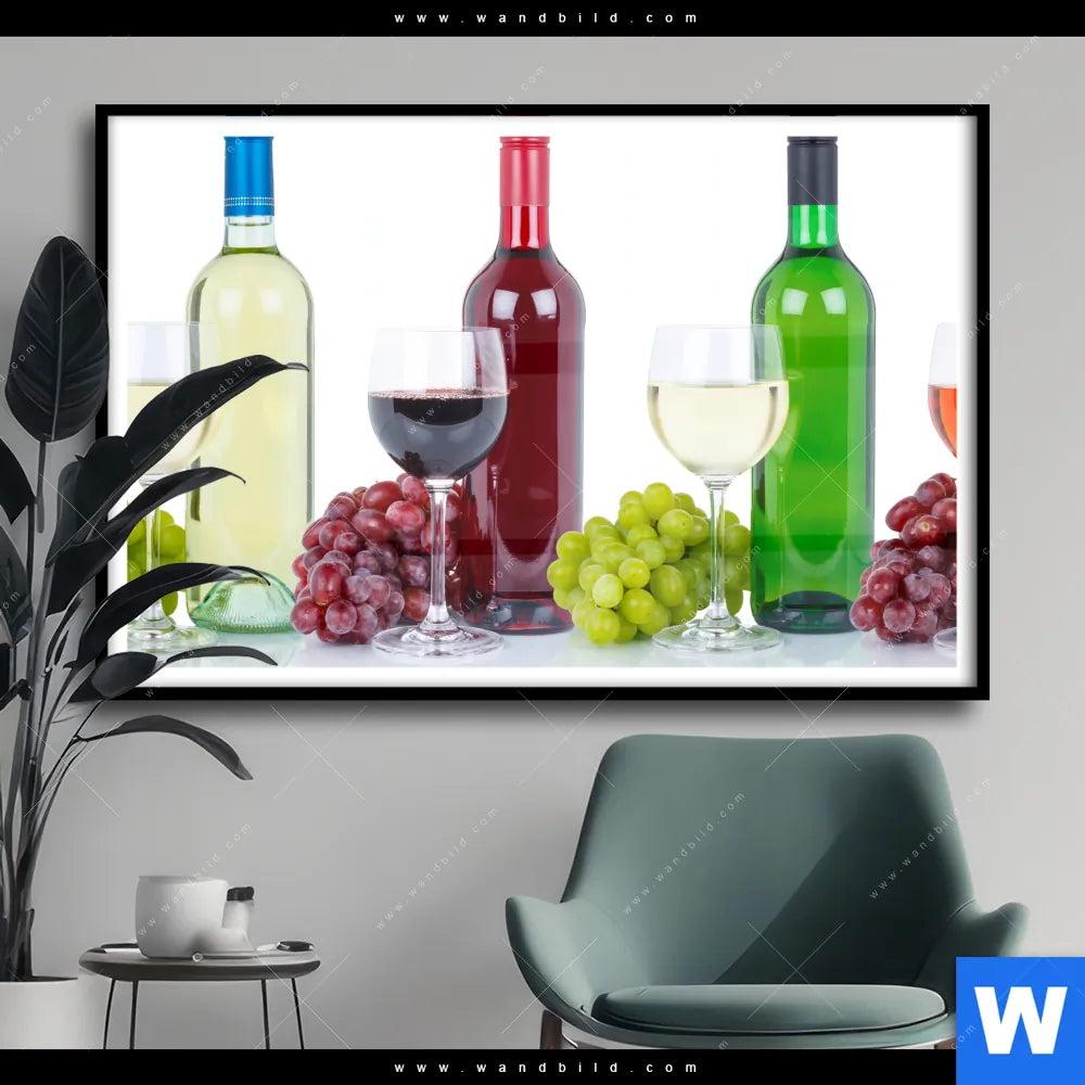 Poster | Wein in Flaschen und Gläsern | Querformat