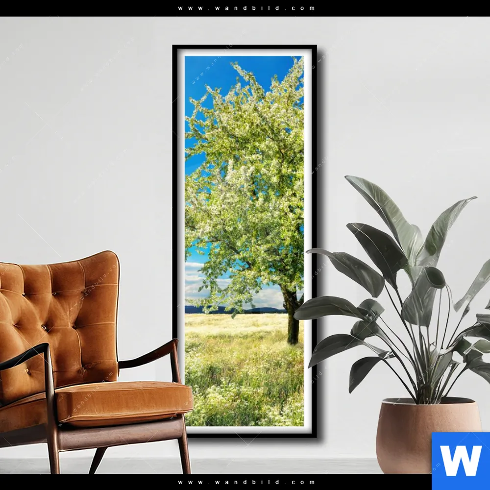 Poster | Wiese mit blühendem Baum | Schmal