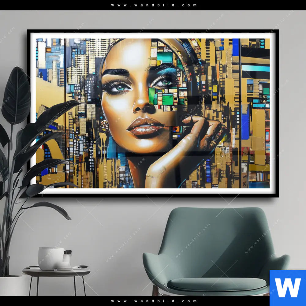 Poster | Zoe - Mosaikgesicht im Großstadtlicht | Querformat