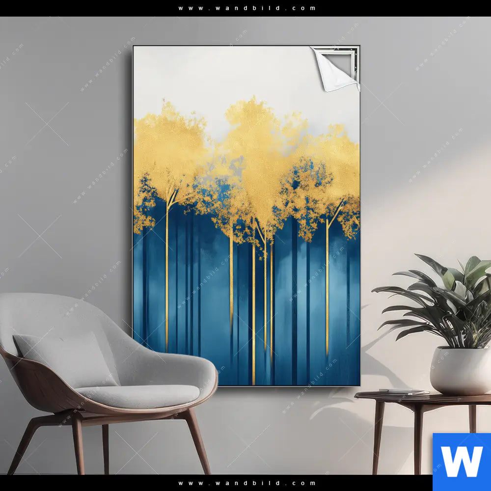 Spannbild | Abstrakter Wald - Blau & Gold | Hochformat