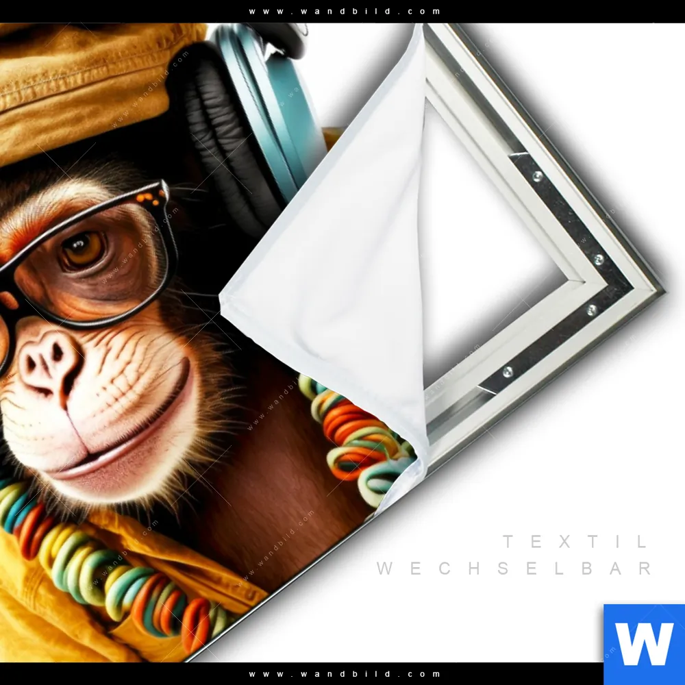 Spannbild | Affe mit Kopfhörern & Brille | Querformat