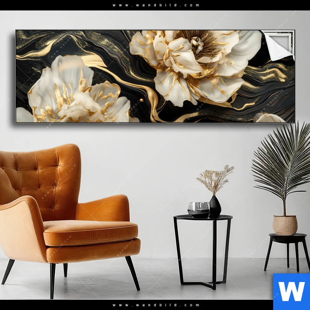 Spannbild | Blüten Gold Weiß Schwarz | Panorama