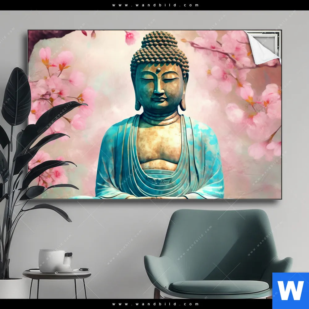 Spannbild | Buddha Statue mit Kirschblüten | Querformat