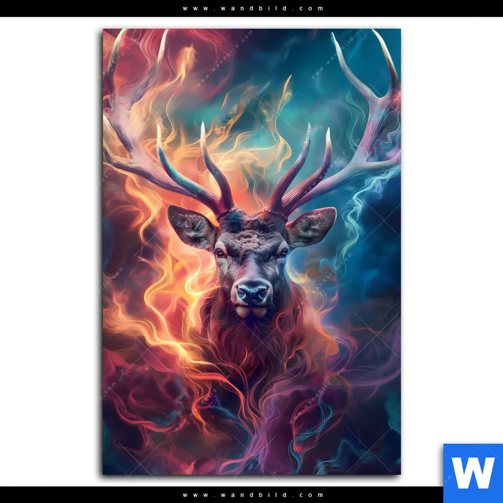 Spannbild | Bunter Hirsch in Flammen | Hochformat