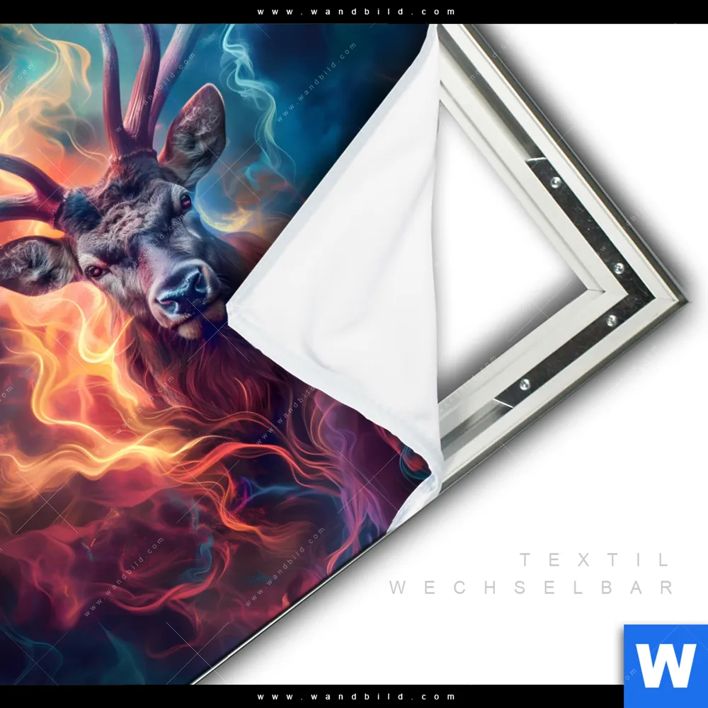 Spannbild | Bunter Hirsch in Flammen | Quadrat