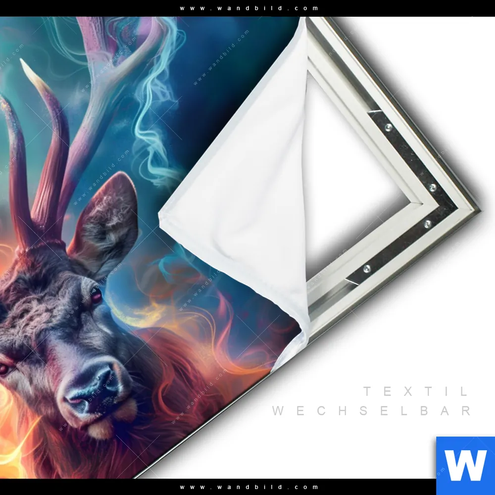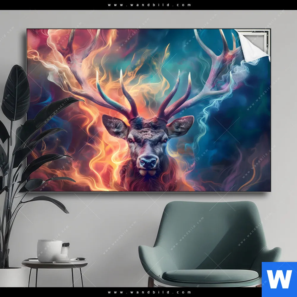 Spannbild | Bunter Hirsch in Flammen | Querformat