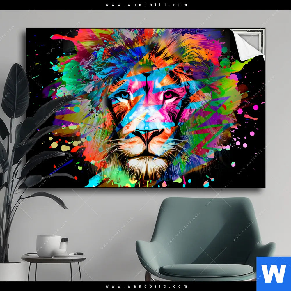 Spannbild | Bunter Löwe Schwarz | Querformat