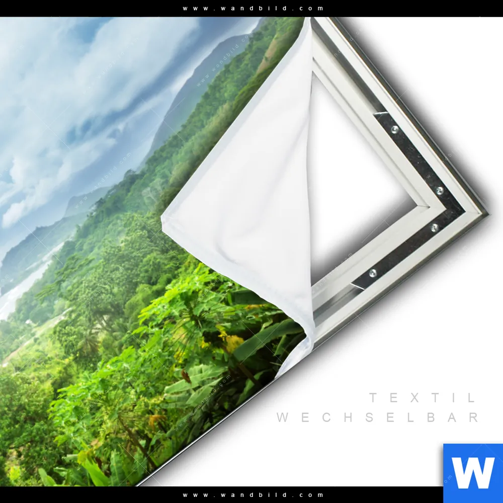 ▶️ NEU: GRATIS Versand (DE) ▶️ Wechselrahmen-System mit austauschbaren Motiven ▶️ Slim-Alurahmen ▶️ Bautiefe 2,5cm ▶️ 4 Rahmenfarben (weiß | schwarz | silber | gold) ▶️ wahlweise als Bausatz oder vormontiert geliefert ▶️ Textildruck mit umlaufendem Flachkeder ▶️ Einmaliger Rahmenkauf – Motive unbegrenzt austauschbar ▶️ Verschiedene Größen & Formate verfügbar ▶️ Alle Motive auch als Wechselmotiv erhältlich