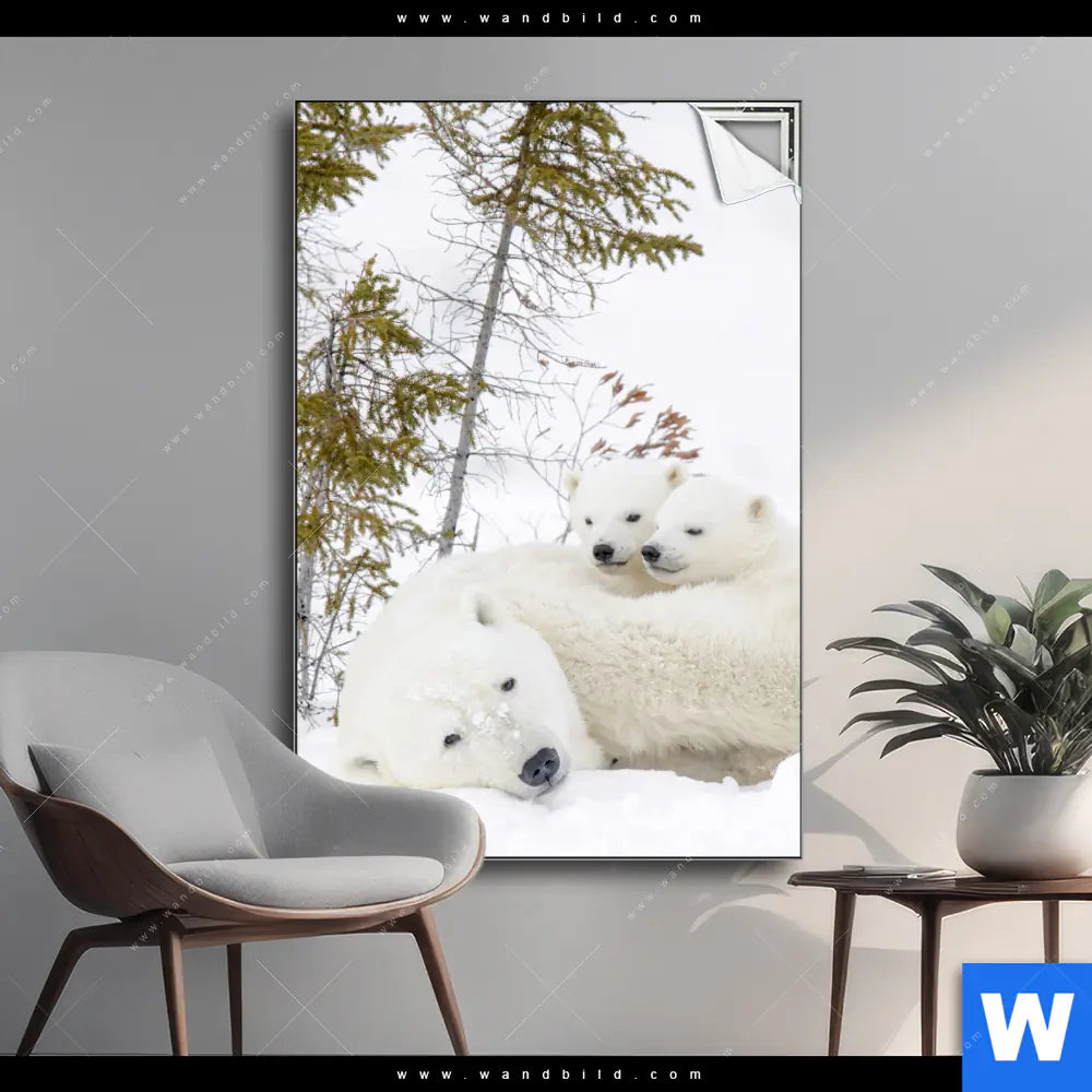 Spannbild | Eisbärenfamilie in winterlicher Landschaft | Hochformat