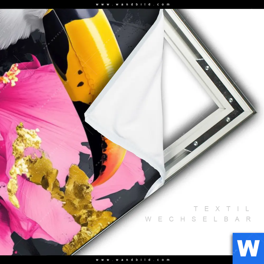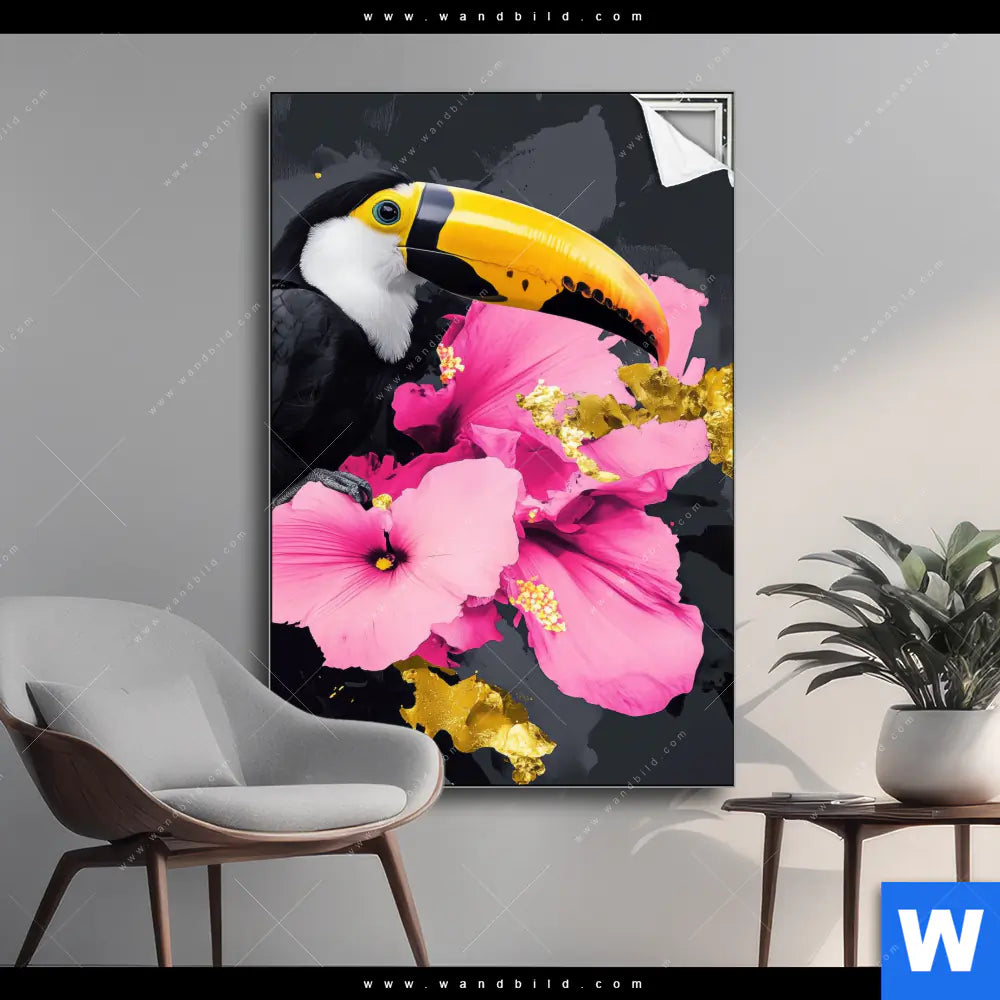 Spannbild | Exotischer Tukan mit Blüten | Hochformat