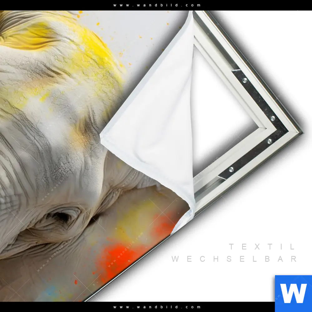 Spannbild | Farbenexplosion mit Elefant | Hochformat