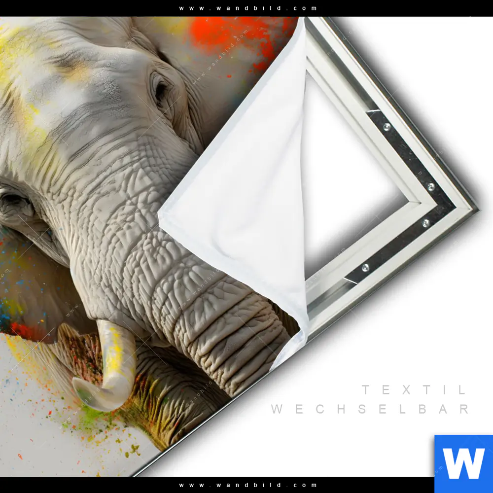 Spannbild | Farbenexplosion mit Elefant | Quadrat