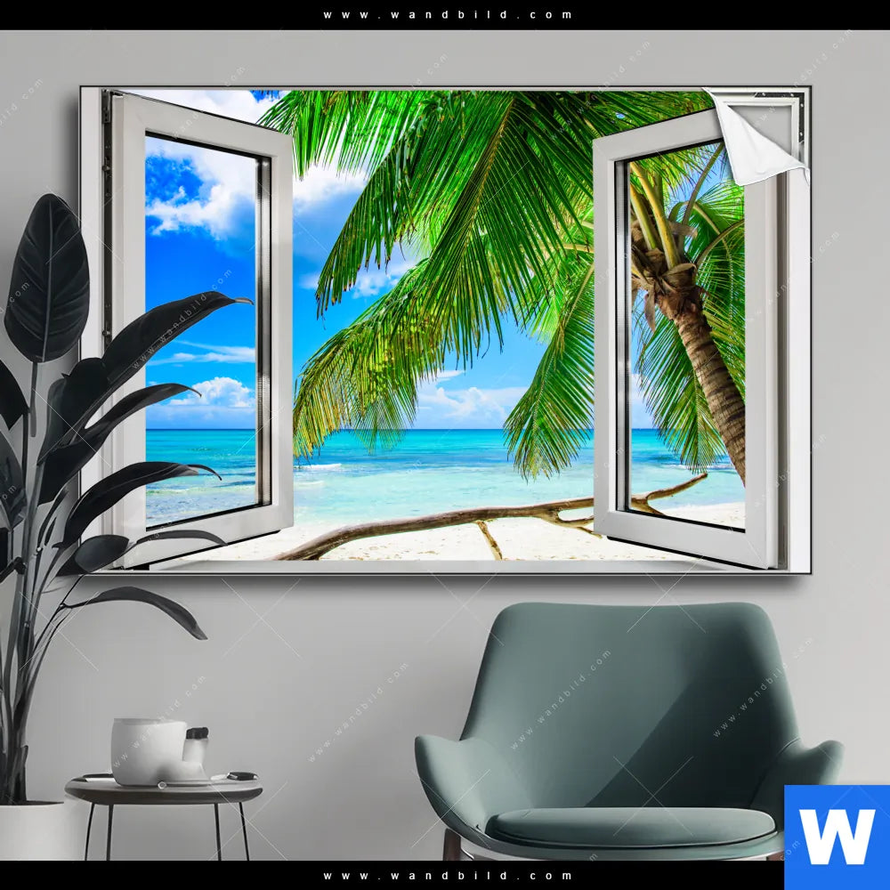 Spannbild | Fensterblick Karibik Palme | Querformat