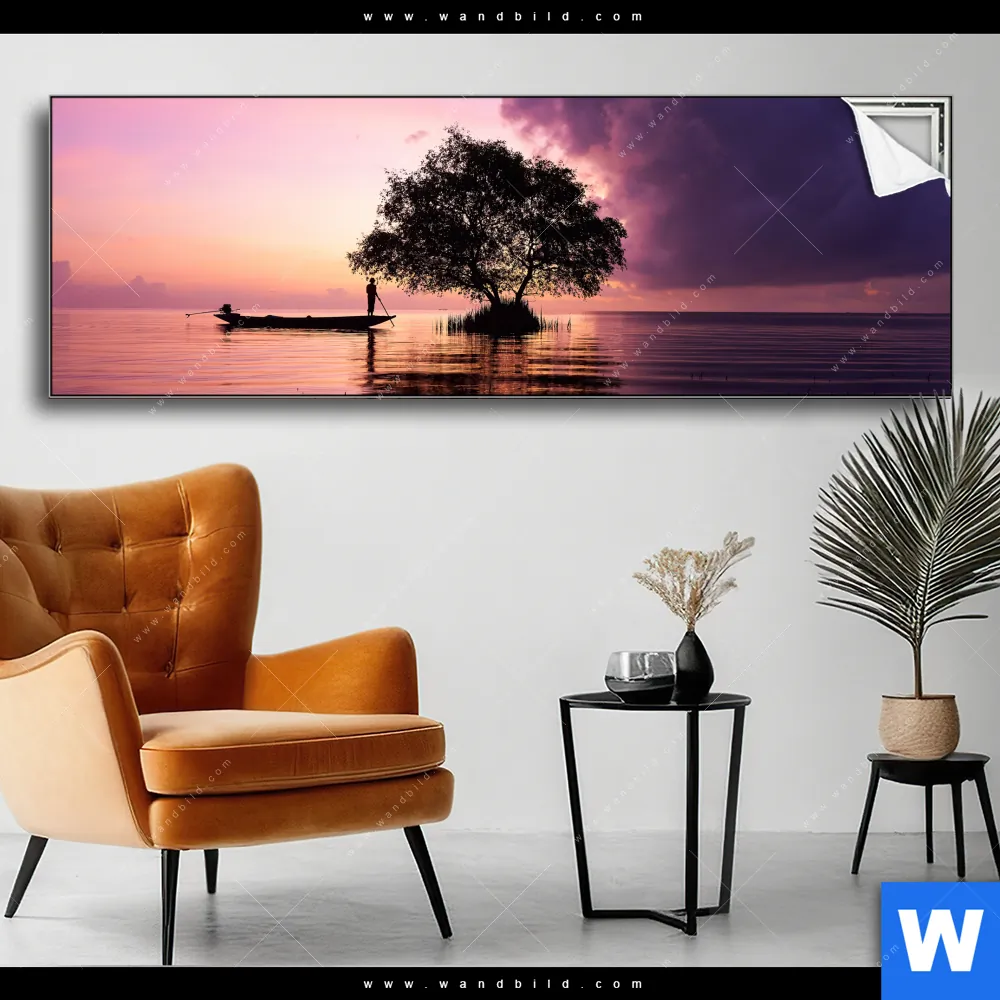 Spannbild | Fischer auf Boot Sonnenaufgang | Panorama