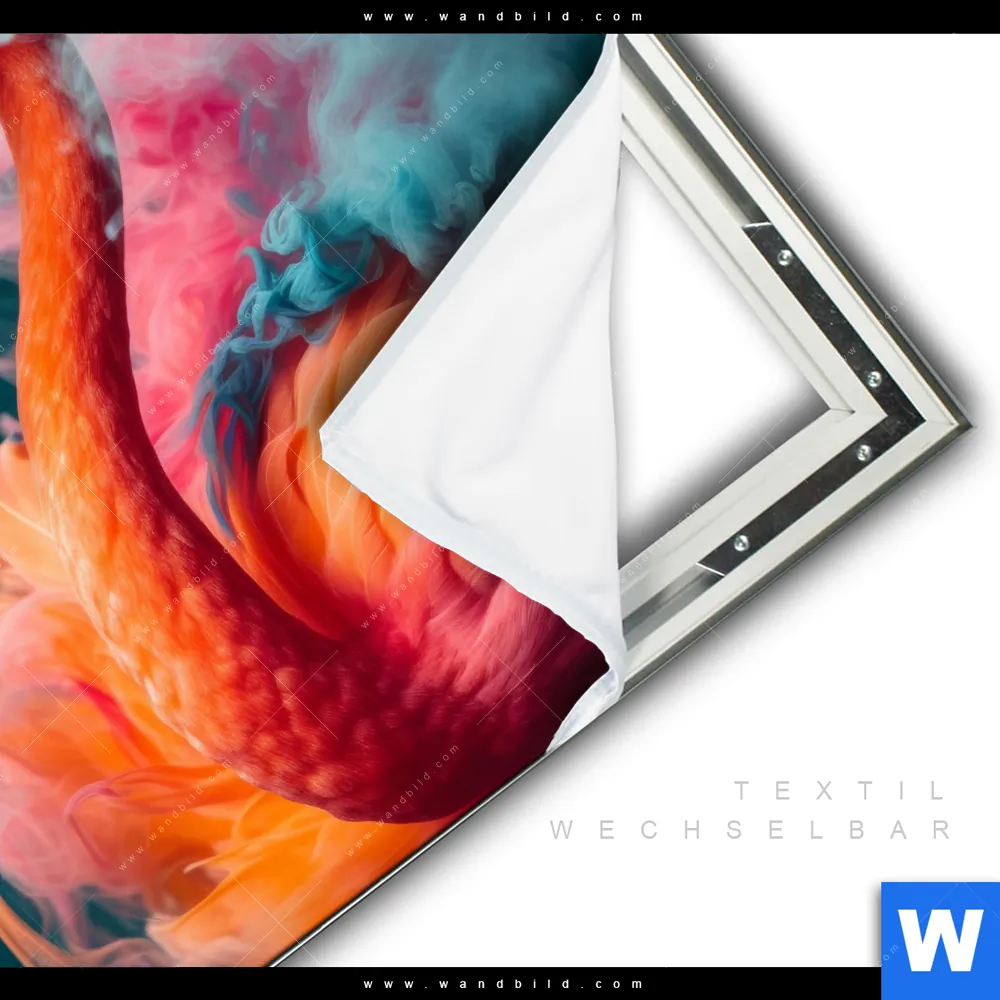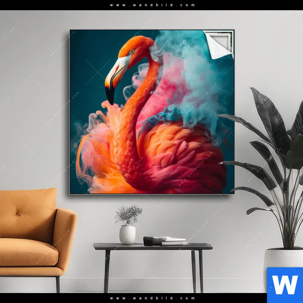 Spannbild | Flamingo in bunter Rauchwolke | Quadrat