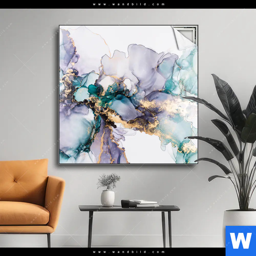 Spannbild | Fluid Art Lila & Türkis | Quadrat