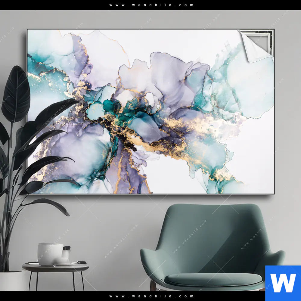 Spannbild | Fluid Art Lila & Türkis | Querformat
