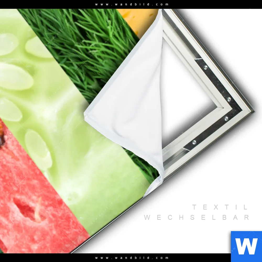 Wechselbild mit Flachkeder-Technik inkl. Aluminium-Textilrahmen