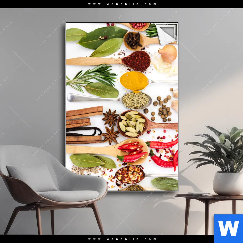 Spannbild | Gewürze auf Löffeln - weiß | Hochformat
