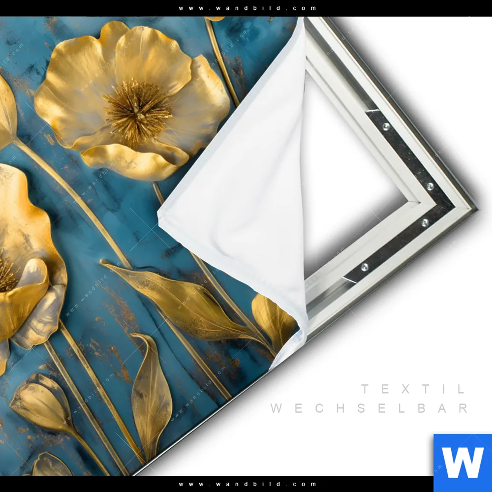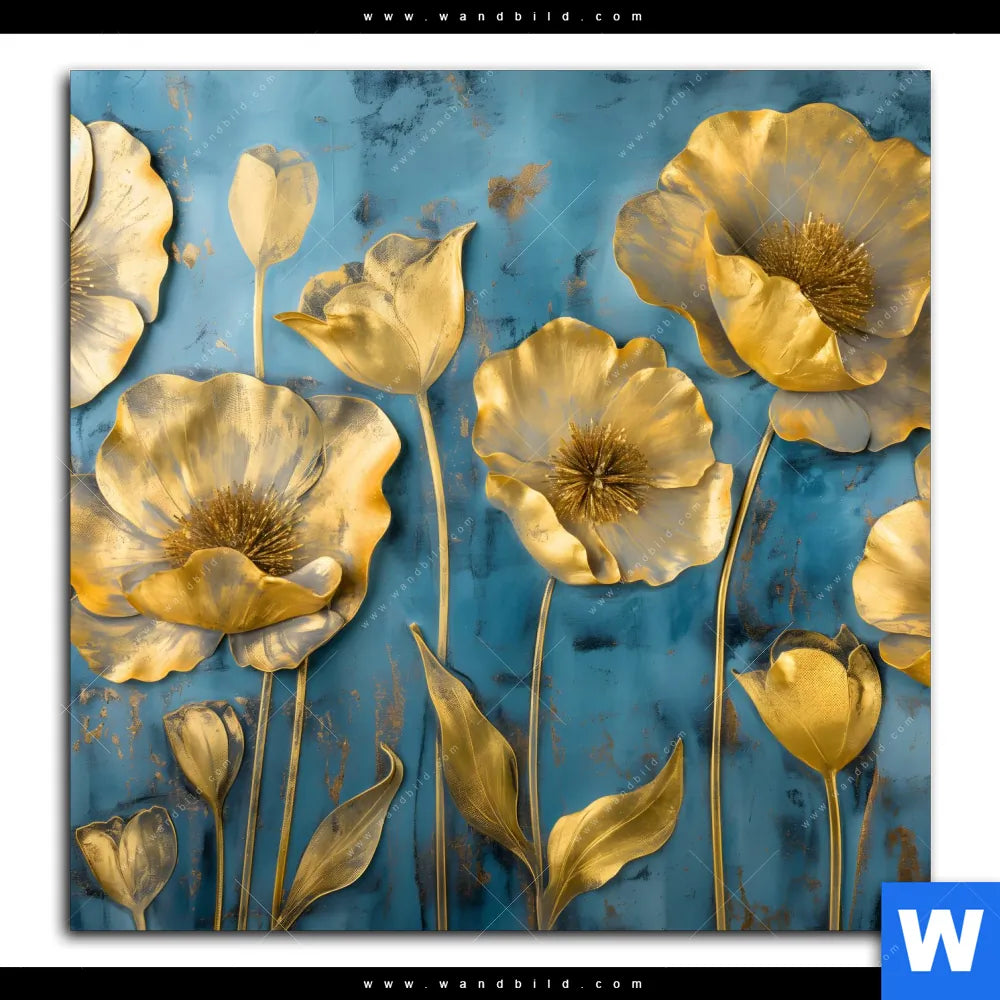 Spannbild | Goldene Blumen auf Blau | Quadrat