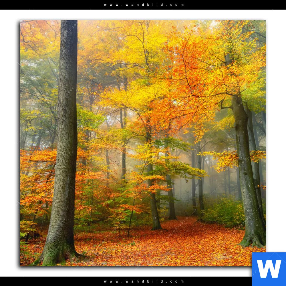 Spannbild | Herbstfarben im nebligen Wald | Quadrat